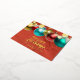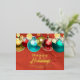 This is a customizable business holiday postcard that exudes warmth and festive cheer. The card features a rich, red background with a golden texture, giving it a luxurious feel. Adorned with a string of beautifully designed Christmas ornaments in gold, red, blue, and green, it captures the essence of the holiday season. The front of the card carries a heartfelt message of "Happy Holidays" in a combination of sans serif and an elegant gold cursive font. Below it, you can personalize the card with your company's name. The real foil accents add a touch of sophistication and shine, making this card truly stand out. This postcard is not just a greeting, it's a memorable keepsake.