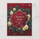 Celebrate the holiday season with this stunning Christmas Party invitation design. Featuring a rich red background, festive pine leaves, gold ornaments, holly berries, and delicate snowflakes, it’s perfect for adding a touch of elegance to your festive gatherings.