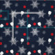 Elegant Christmassy pattern for pickleballers. Red pickleballs with white pickleball paddles and snowflakes, on navy blue background