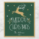 Elegant Christmas Reindeer Festive Forest Green Wine Label