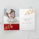 Elegant Christmas Script Gold Leaves Holiday Photo Folded Card, featuring our modern script and stylish gold foil style leaves. Space for two photos and your own custom greeting.