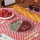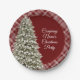 Elegant Christmas Tree Dark Red Plaid Party Paper Plate