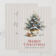 Send your Christmas holiday cards with ease this year with this simple, elegant card that has a decorated Christmas tree in a lovely porcelain pot with a few wrapped gifts under the tree. A vintage background of palest blue-grey and ecru beige vertical stripes adds a stylish touch to this design. Classic serif fonts spell out "Merry Christmas from our house to yours". You can edit this text or leave as written. The back of the card has a sample holiday message along with your name(s). Edit the template and you have a custom Christmas card you'll be proud to send to friends, family and associates.