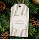 Create your own Christmas gift tags with family name and date on vintage style holiday colour stripes background.