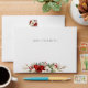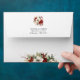 This romantic and classic Christmas or winter-themed wedding envelope design features clusters of vibrant red and white winter flowers, pine, holly berries and rustic twigs, custom modern text graphics and editable text fields.