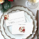 This romantic and classic Christmas or winter-themed place card design features a cluster of vibrant red and white winter flowers, pine, holly berries and rustic twigs, custom modern text graphic and line elements. Back features a complementary floral graphic and editable text field.