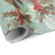 Classic, stylish Christmas pattern design depicting painted holly leaves and berries over a soft teal background.