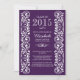 Beautiful class of 2015 graduation invitation featuring a vintage fancy swirl border framing your grad party info set on a purple background. Just personalize with your party info and you are all set to go. Available in our shop in a variety of popular school colours. Perfect for a girls graduation, boys graduation, college graduation, high school graduation, grad school graduation or a graduation announcement.
