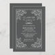 Elegant vintage class of 2018 graduation party invitation featuring a beautiful formal vintage scroll frame set on a classic classy charcoal grey grey background. Available in our shop in a variety of popular school colours.