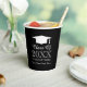 Elegant class of 2025 senior name graduation party Paper Cups. Personalize with your own name and colors. Black and white design with tassel cap icon and stylish typography template.