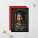 Celebrate a milestone moment with this elegant "Class of 2026" portrait-style graduation announcement. Featuring a dramatic black background, refined gold accents, and an ornate frame design, this vertical layout showcases the graduate’s photo in a timeless, formal presentation. Personalized with the graduate’s name, school, and class year, this design creates a polished keepsake perfect for honoring high school or college achievements. Ideal for sharing with friends and family, this sophisticated graduation announcement highlights pride, accomplishment, and the beginning of a new chapter. Back background is a rich shade of red.