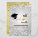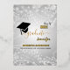 Invitation Cards (Foil luxury cards): Modern graduate photo card with Class Year 20XX, Graduation Topper cap and personalized text. Graduate photo inside and invitation details, address, rsvp.