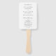 Elegant black and white wedding program hand fan featuring a simple and minimal design with the names of the bride and groom in a traditional serif font and the middle and last names in an elegant calligraphy script. A classic style that is perfect for a formal wedding.