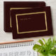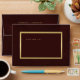Modern stylish formal wedding invitation envelope in a vintage style antique distressed looking dark burgundy with gold frame and typography. Personalized with your custom sender return address on the backside.
