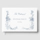Elegant ornate dusty blue floral frame adapted from classic 18th century French engraving. Includes text field on the spine as well as an optional crest with initials on the back.