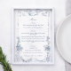 Elegant ornate dusty blue floral frame adapted from classic 18th century French engraving.