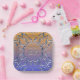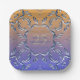Elegant and unique personalized paper plate design featuring an ornate blue metallic frame on a gradient orange to purple background. The text is fully customizable. To change it use the Personalize option. For more changes, such as changes to the font, font colour or text layout, use the Edit design tool option.