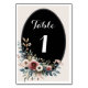Elegant Classic Floral Rustic Wedding Table Nº 4. Help your guests easily find their way with these lovely table number cards. Easily edit the numbers, names and date! Features a classic black oval centre with elegant floral arrangements in soft blush, cream, and dusty blue hues.