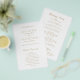 Elegant faux gold budget wedding program (printed on thin flyer paper) featuring a simple and minimal design with the names of the bride and groom in a traditional serif font and the middle and last names in an elegant calligraphy script. A classic style that is perfect for a formal wedding.
