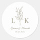 Elegant Classic Leaf Monogram Wedding Olive Green Classic Round Sticker