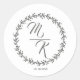 Elegant, classic monogram wreath round sticker