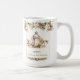 White and cream hot cocoa or chocolate Christmas Large Coffee Mug in classic but modern farmhouse style adorned with pine, white Christmas flowers, lantern and a cute bird. Easily personalize the text - Kate Eden Art