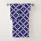 Elegant Classic Navy Blue and White Mosaic Pattern Bath Towel Set