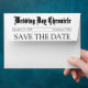 A hum drum envelope has been made elegant and worthy of your Save the Date announcement card. It is easily personalizable with old style calligraphy and simple, modern typography to complement the iconic newspaper style of this unique wedding suite. The classic, regal, minimalist aesthetic will hopefully delight the recipient and because it is minimalist, this design style is appropriate for a winter, spring, summer and fall wedding. See the Wedding Collection on this page for the beautiful options available to you. Congratulations from Home Together!