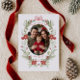 The wreath frame adds a touch of vintage elegance to the card. It features an intricate green and red winter botanical watercolor design that is both timeless and unique, making your holiday card stand out from the rest. On the reverse side you'll find ample space to add your personal Christmas wishes to friends and family.