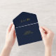With its elegant dark blue background and gold text, this all-in-one wedding invitation is a work of art, setting the stage for a wedding day filled with love, joy, and unforgettable moments.