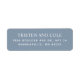 Classic return address labels. White serif and sans serif fonts on a dusty blue background. Stick to the left front or back flap of envelopes and small packages.