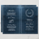 Elegant and classy wedding design. Navy blue watercolor paper. Beautiful seashell with flowers. White lettering. Elegant font combo. Wedding monogram: classic laurel wreath with bride’s and groom’s initials in it. Perfect for beach wedding, seaside wedding, coastal wedding, or ocean wedding. Blue and white colour theme, simple elegant design make it a great choice for a classy, semi-formal wedding.