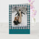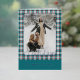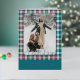 This holiday greeting card stands out with its elegant and unique design. It features a timeless "Happy Holidays" greeting printed in real gold foil, customizable to your preference, on a teal blue, white, and maroon red plaid pattern design. The front offers space for your family name, photo, and custom seasonal greeting, while the back is perfect for adding a personalized seasonal message or poem. It's a stylish way to send your holiday wishes.