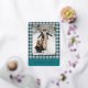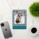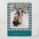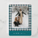 This holiday card stands out with its elegant and unique design. It features a timeless "Happy Holidays" greeting printed in real gold foil, customizable to your preference, on a teal blue, white, and maroon red plaid pattern design. The front offers space for your family name, photo, and custom seasonal greeting, while the back is perfect for adding a personalized seasonal message or poem. It's a stylish way to send your holiday wishes.