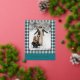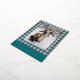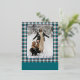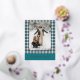 This holiday greeting postcard stands out with its elegant and unique design. It features a timeless "Happy Holidays" greeting printed in real gold foil, customizable to your preference, on a teal blue, white, and maroon red plaid pattern design. The front offers space for your family name, photo, and custom seasonal greeting, while the back is perfect for adding a personalized seasonal message or poem. It's a stylish way to send your holiday wishes.