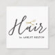 Elegant customizable business card template with FAUX gold scissors icon /white background and handwriting text. Modern clean design, perfect for hair stylist, hairdresser.