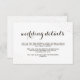 Elegant glam cocoa text and white wedding guest details card with tiny dots.