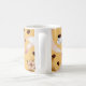 This coffee mug features a warm yellow background adorned with delicate floral designs, accented by scattered coffee beans and soft pink ribbon elements. The central focus of the design is a customizable monogram, framed in an elegant gold border, adding a touch of personalization and sophistication. The artwork also includes steaming coffee cups nestled among the flowers and ribbons, enhancing the cozy and inviting theme. This mug is perfect for coffee enthusiasts who appreciate a stylish and customizable design.