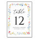 Elegant Colorful Wildflower Meadow Wedding Table Number