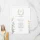 Elevate your reception tables with this romantic wildflower wedding menu card. Featuring a delicate watercolor floral monogram at the top and soft blush, blue, and golden blooms along the sides, this design brings timeless garden elegance to your place settings.