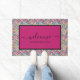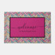 Elegant welcome Doormat with a black script on a pink background embellished by a colourful chevron border. Personalize with your family name or text.