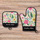 Elegant Colourful Flowers & Kraft Personalized Gif Oven Mitt & Pot Holder Set