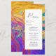 This modern abstract wedding menu is perfect for couples who want to add a touch of fun and personality to their wedding reception decor while also letting their guests know what delicious meals and drinks they'll be enjoying. Our artistic design is fully customizable, meaning you can add your own personalized touch to make your menu cards truly unique. The chic and stylish design features beautiful typography on a pastel colourful abstract oil painting background. The combination of these two elements creates a stunning effect that will be sure to impress your guests. The menu is printed on premium card stock for a luxurious feel. add some personality and fun to your wedding reception decor while also providing practical information for your guests.