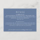 This elegant wedding details / info card features a dusty blue background and vintage inspired typography in white. The back of the card is the same dusty blue colour - to which you can also add additional text if needed. This design would be a fabulous choice for a spring, summer, or fall wedding. All colours of this design are customizable. See the collection for coordinating items!