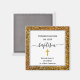 Elegant Congratulations ADULT BAPTISM magnet with simple gold coloured cross, faux gold glitter border and decorative script typography, Wording reads CONGRATULATIONS ON YOUR BAPTISM. Underneath there is CUSTOMIZABLE TEXT which reads 'Anyone who is in Christ is a new creation' which is based on 2 Corinthians 5:17. This text can be personalized by adding your name and date, or alternative wording. This baptism magnet would make an ideal favour keepsake giveaway for baptismal candidates. Matching cards and other baptism designs are available. Choose from a wide selection designed by Berean Designs.