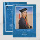 An elegant, contemporary blue graduation announcement for high school or college. Small, colorful blue drapery on a marbled blue background provides the basic design. The photo and all text are easily changed by using the template. Selecting “Personalize this design” offers you several edit options to easily change the text (wording, plus type font, color, size, position) and to possibly edit the design elements. You may also want to scroll down to the section “Transfer design to a product” for a few suggestions about other items this design can be used on. Comes complete with envelopes.