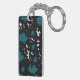 This keychain features an abstract design of irregular shapes resembling teal and black spots on a white background, blending creativity with minimal elegance.