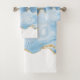 Towel set with a beautiful icy blue agate design with faux gold glitter accents.