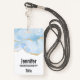 A name tag with a beautiful icy blue agate design with faux gold glitter accents.