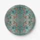 Elegant Copper and Turquoise Floral Pattern Paper Plate